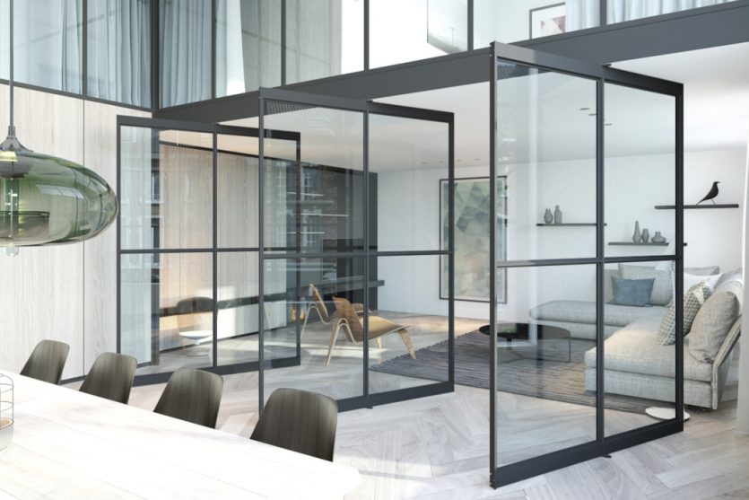 Les portes intérieures IDA ont la particularité d’avoir l’apparence de l’acier, matériau très à la mode, mais d’être en réalité composées d’aluminium. Couplé au verre, ce profilé à l’effet acier peut servir à réaliser des cloisons ; il s’adapte facilement à tous les environnements que ce soit aux intérieurs d’habitations modernes mais aussi aux surfaces commerciales ou de bureau.