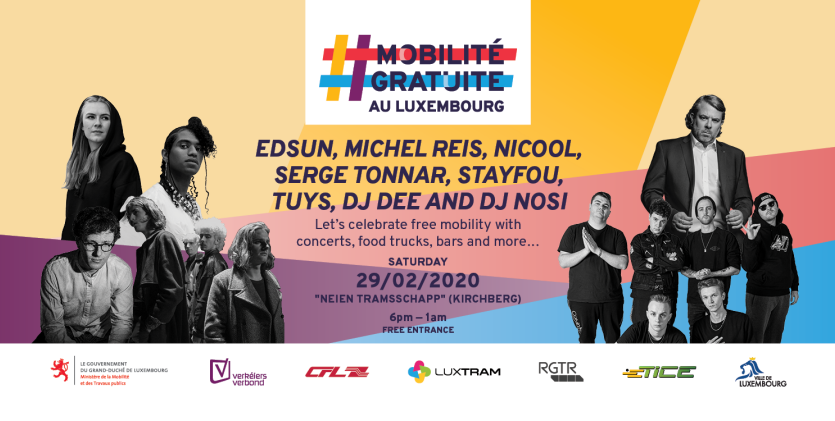 Rejoignez-nous le samedi 29 février 2020 de 18 à 1 heures au « Neien Tramsschapp » au Kirchberg pour fêter la mobilité gratuite!