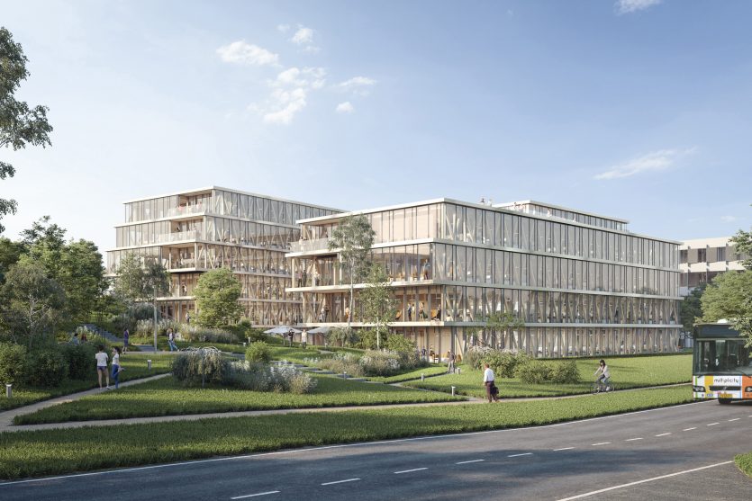 Derrière ses façades vitrées sur six niveaux, le nouveau bâtiment Wooden révèle une ossature en bois, dont les lignes en V lui confèrent un caractère unique. Exemplaire en matière de développement durable et de bien-être, l’immeuble de 9.600 m2 offrira à ses occupants un environnement de travail d’une qualité inédite.