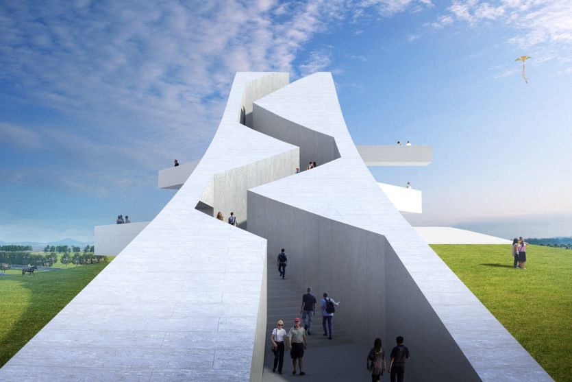 En résumé, cette ancienne légende repose sur la mythologie chinoise et le cabinet d’architecte a voulu raconter l’histoire de ce « cheval dragon » à travers ce projet. Tout a démarré avec le livre d’astrologie « I Ching ». Cette créature est sortie du Fleuve Jaune, portant sur son dos le « Hetu », en même temps qu’une tortue, qui elle, portait le « Luoshu ». Ces deux diagrammes ne sont que les symboles de l’univers et de la naissance de l’écriture, ils contiennent chacun d’eux les huit trigrammes du Paradis et de la Terre, le Yin et le Yang, les cinq éléments,… D’après la légende, cet animal hybride était sacré et a apporté la civilisation au peuple chinois. Aujourd’hui, son esprit est associé à la vigueur et à la prospérité, les symboles que prônent la société chinoise actuelle. Situé dans la région montagneuse, sur la Montagne Cangma, le design et l’architecture de ce projet s’inspirent de cette histoire et de cette culture, tant dans la forme que dans l’esprit mystique du lieu.